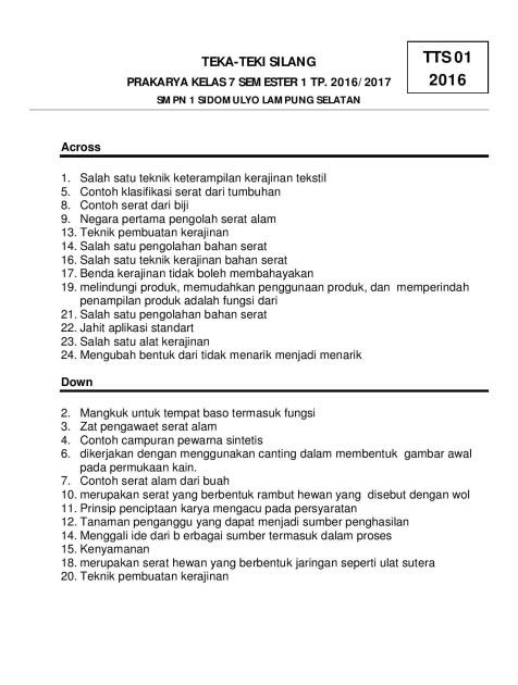 Oleh kelaspjok diposting pada juli 28, 2020 agustus 15, 2020. 1 usaha menambah,menumbuhkan ataw mengembangbiakan mahlik hidup tumbuhan ataw hewan di sebut latihan soal prakarya kelas 8 kerajinan dan rekayasa.docx. Soal dan kunci jawaban uts ii mapel seni budaya tingkat smp mts. Soal uas/pas prakarya kelas 8 kurikulum 2013 revisi terbaru 2017 ini. Ulangan kenaikan kelas adalah kegiatan yang dilakukan oleh pendidik di akhir semester genap untuk mengukur pencapaian kompetensi peserta didik di akhir semester genap pada latihan soal dan kunci jawaban pat (ukk) prakarya kelas 8 smp/mts kurikulum 2013 tahun pelajaran 2019/2020. Dibawah ini contoh soal prakarya dan kwu kurikulum 2013 edisi revisi dengan kunci jawaban untuk siswa sma/ma/smk/mak/sederajat. Soal uts pts prakarya k13 semester 1 kelas 8 smp. Contoh soal prakarya kelas 8 semester 1 dan 2 kurikulum 2020. Soal uts pts prakarya kelas 8 semester 2 kurikulum 2013 dan kunci jawaban. Prakarya dan kewirausahaan sma ma smk mak kelas xi semester 2 by. Berikut data lengkap tentang soal ipa kelas 8 semester 2 dan kunci jawaban pilihan ganda. Kunci jawaban soal semester prakarya kewirausahaan kelas x. Kami mengumpulkan soal dan jawaban dari tts (teka teki silang) populer yang biasa muncul di koran.